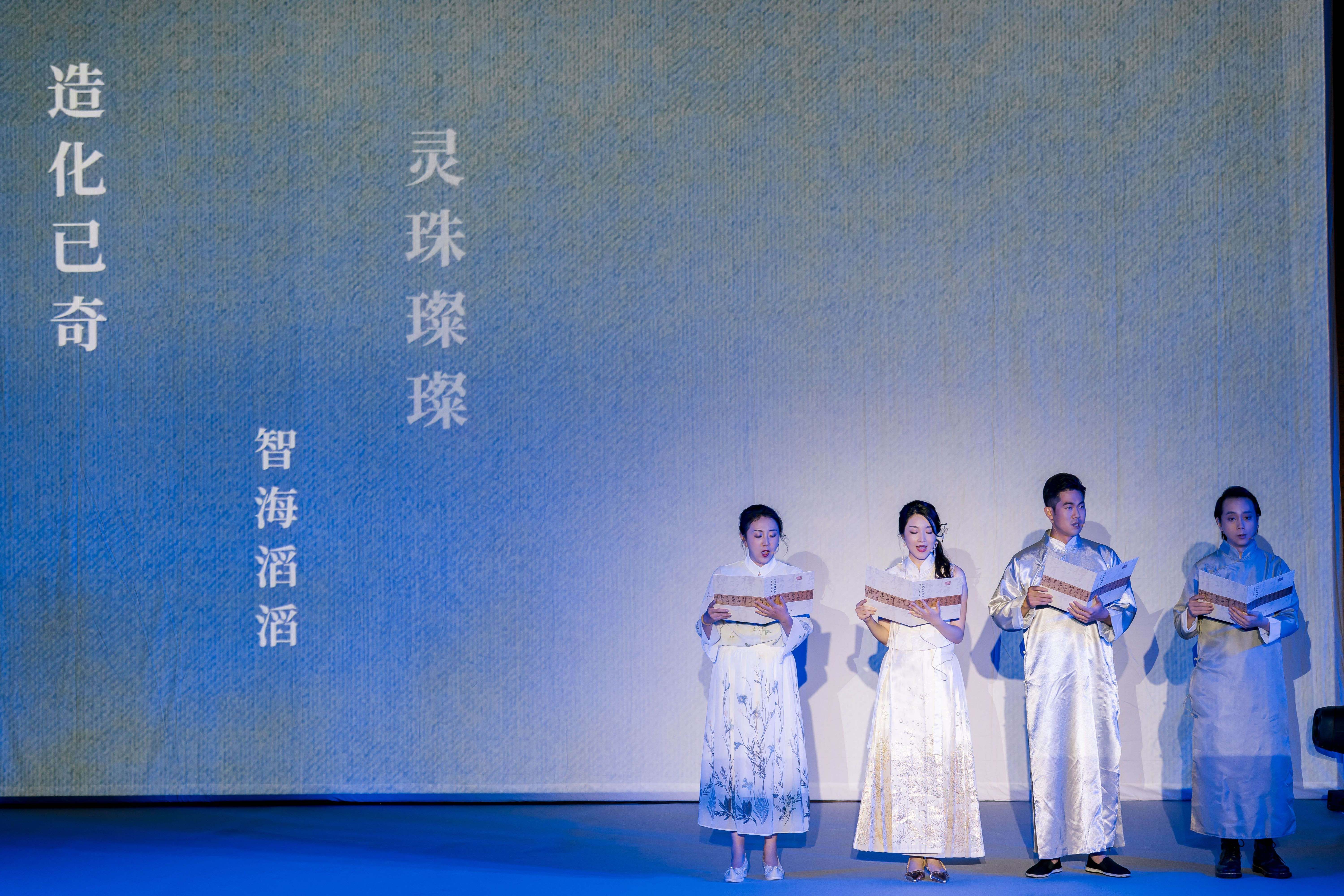 “风日水滨,清露未晞。薰风南来,荏苒在衣。南风吹竹,妙音希声。南有嘉木,奇花初胎。”当四言诗吟唱《有风自南》的音律还在剧场间袅绕时,《桨声艇影里的荔枝湾》已伴着艇仔粥的叫卖声、泮塘之上的阵阵荷香、珠江畔的水浪声,迅速打开观众的五感,构建出让人沉醉的时空蒙太奇。